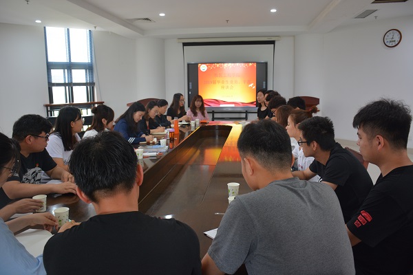 于实验楼北430会议室召开了2019届毕业生党员、干部座谈会。院党委副书记牛娟、团委副书记韩笑、研究生辅导员杜海利、教学干事陈宇出席座谈会,2019届本、硕毕业生党员、学生干部代表参加会议。会议由牛娟主持。