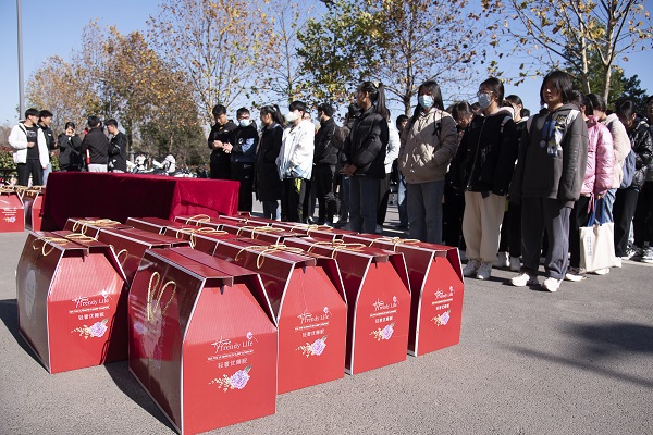 领导老师依次向在场学子表示慰问,送去冬日的温暖与祝福。并为同学们送上一箱面包、牛奶以及一床精心挑选的御寒棉被,为同学们艰辛的求学之旅带来温暖的同时,也蕴含着“包”你上岸、“牛”气冲天的美好寓意!寒风虽凛冽,布衾暖身心。到场学生收到暖冬礼品后十分感动,纷纷表示一定不负学院的期望与厚待,学农爱农服务于农,努力成长为对社会、国家有用的人。