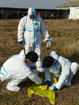 随后,调研团队先后考察了养殖场、兽药零售连锁店和动物医院,全面了解当地牧场的运营模式与特色、当地反刍动物在疾病诊疗、常用药物使用习惯以及临床疾病宣传、防控等方面的情况。针对当地反刍动物高发的血虫病,项目合作单位河北威远药业国家级二类新兽药制剂二丙酸咪多卡注射液(苏鲁得)自近期上市后快速推广应用,得到了广大牧民的一致好评。团队随行研究生还对养殖场的牛、羊粪便进行了采集,后续通过检测了解当地肠道寄生虫流行现状,以便进行更精准的判断与用药方案指导。