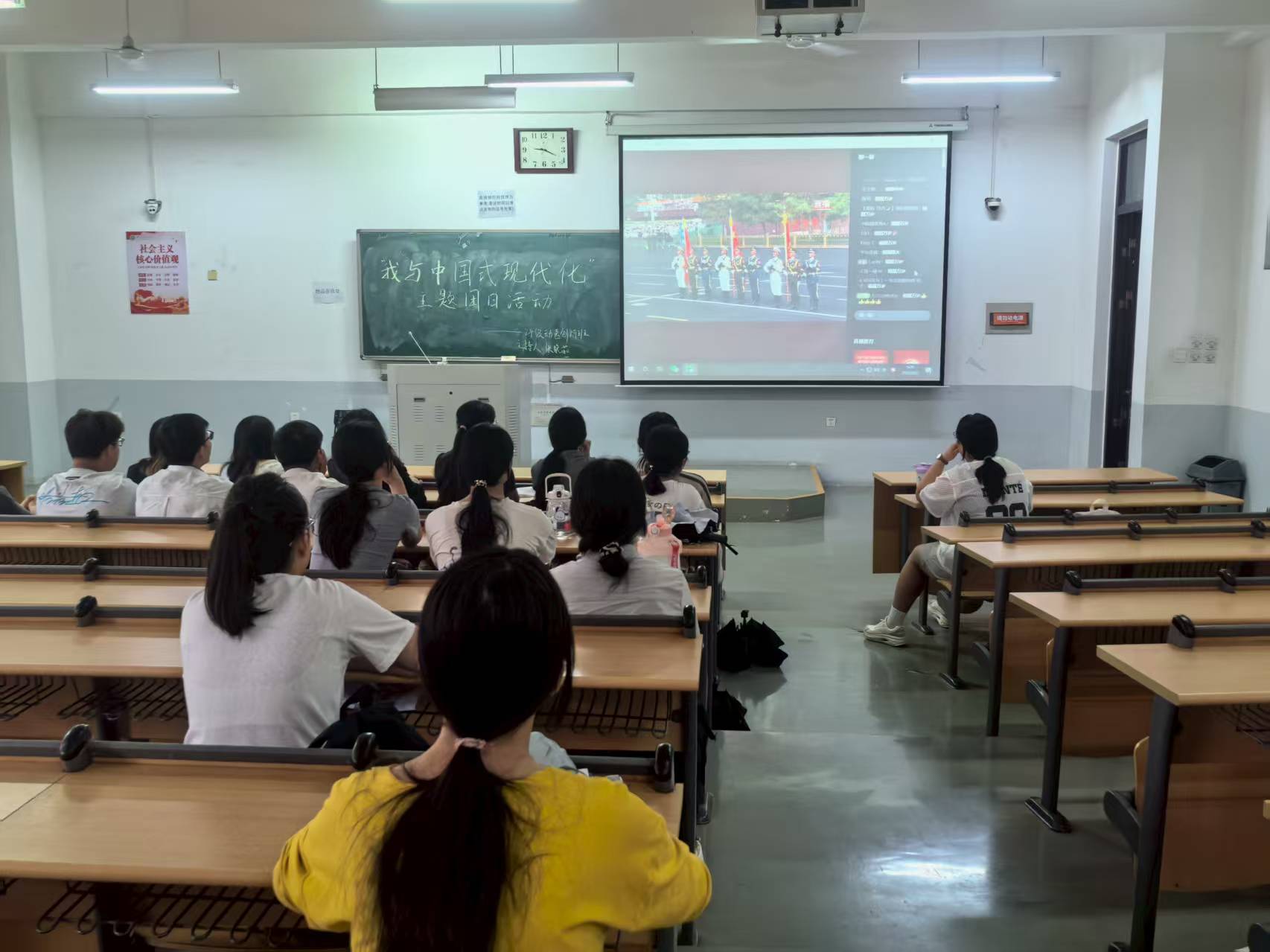 组织全体师生集中观看九三阅兵,纪念中国人民抗日战争暨世界反法西斯战争胜利80周年。