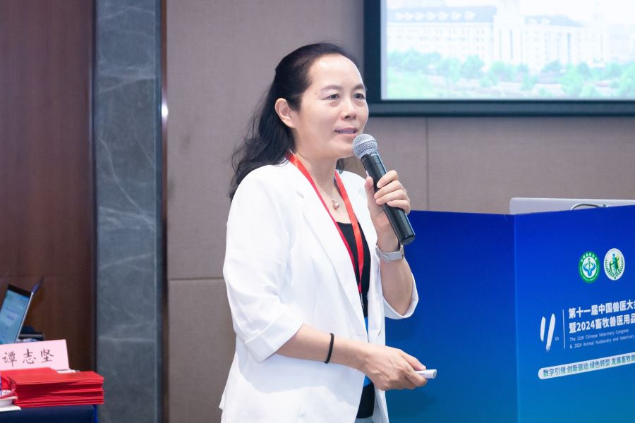 王璐阳博士作了《放牧羊蜱传病原的诊断及防控》报告;佛山正典生物技术有限公司研发平台首席王新秋作了《正典生物寄生虫防控技术研发进展》报告。