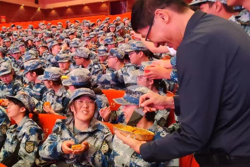 正值中秋佳节,学院特别策划“共度中秋节,同吃一张饼”活动,为军训教官和全体新生准备了水果和月饼,学院领导、班主任、团委老师来到学生中,分享节日食物,共话佳节。现场氛围其乐融融,新生们在学校感受到了家的温暖。