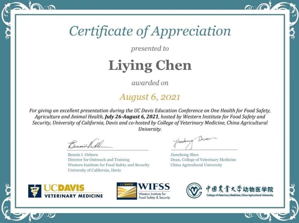 联合主办,会议汇聚了来自北美、亚洲、欧洲和澳洲29所院校的55位专家学者,以及来自美、中、日、韩等国家17所院校的80余名学生,围绕“One Health”理念开展交流和研讨。会后采访中陈丽颖老师表示,“人类健康和动物健康是相互依存的,与其所处的生态系统健康息息相关——OIE完美地阐释了这一概念。信息透明、科学支持、人类医学和兽医学相互协作,以及最重要的国际合作,对于实现全健康目标至关重要。参加此次会议是一次特别的经历,也有助于学术分享与交流。”(文 冯佟)
