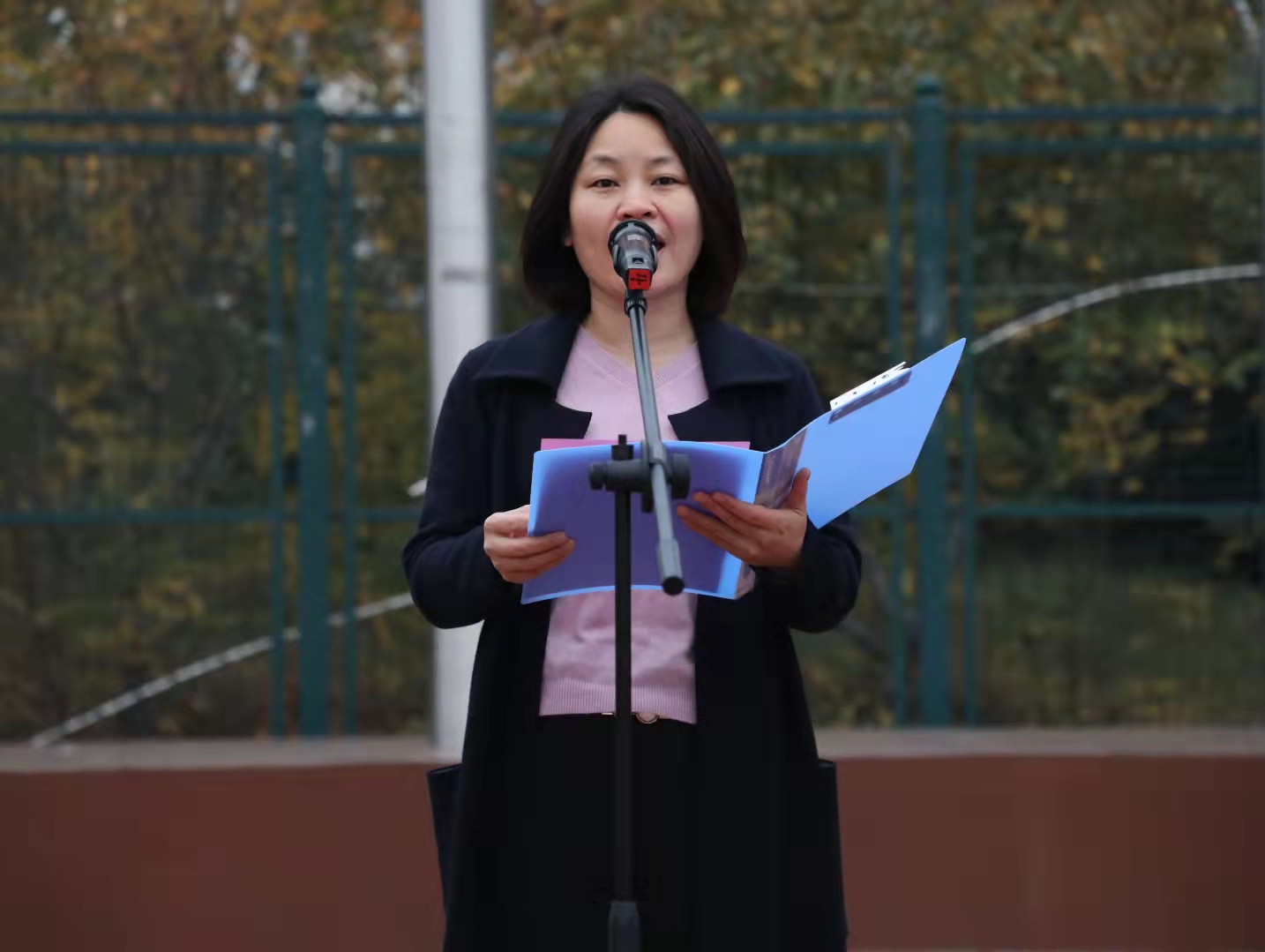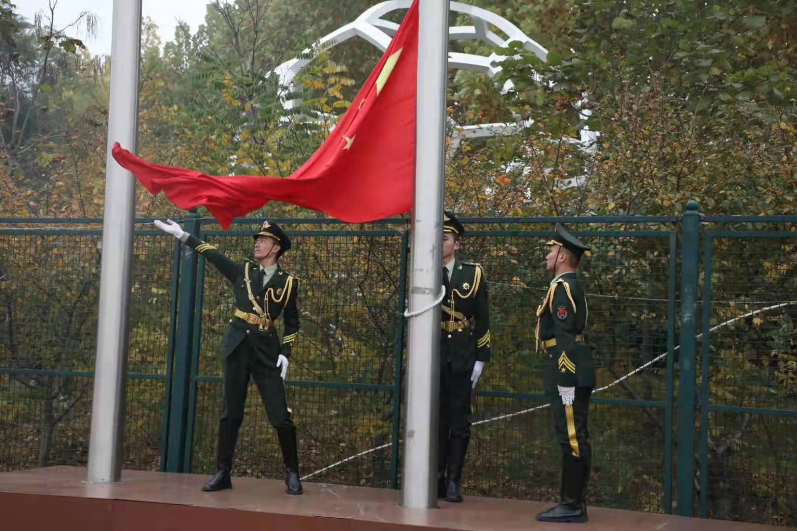 于龙子湖校区田径场举行“我与祖国共奋进”升国旗仪式,学院领导老师及全体学生参加升旗仪式。升旗仪式由院党委副书记王照兰主持。