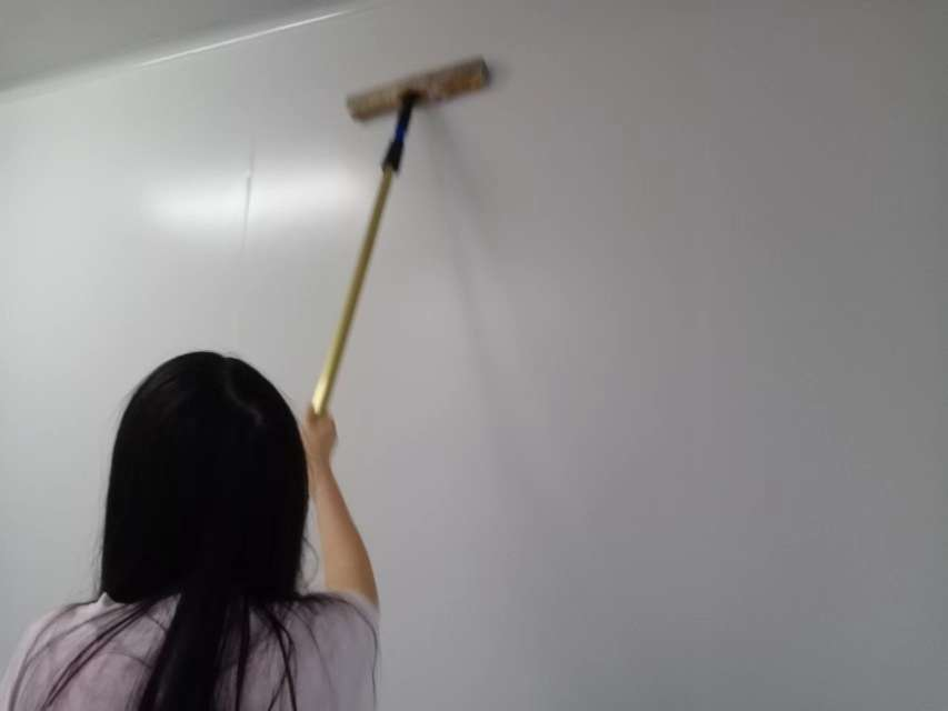 虽有良剑,不锻砺则不铦;虽有良弓,不鼓舞则不正。由于这里的工作不是很忙,因此我们在第三车间实习的第二天的主要工作是打扫卫生。早上分配完任务后,我们简单规划了一下打扫流程,之后循序渐进地进行。首先,先用抹布仔细地把整个车间的所有玻璃都擦了一遍,然后,把窗户角落里的灰尘进行彻底的清理,之后,去水槽清洗了刷墙的工具,借助工具尽可能地把整个车间的墙面进行了清洁。由于这里墙面积累的灰尘较多,我们今天两次清洁了墙面,我们还用了一个小推车运水,辅助我们完成分配的清洁墙面的工作。