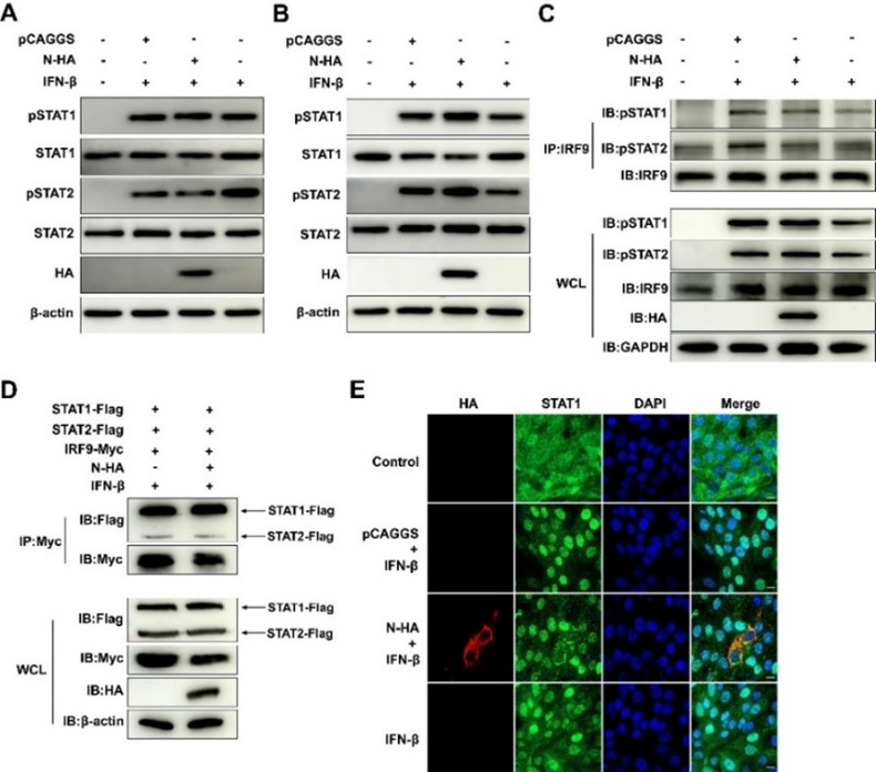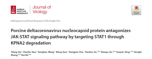 魏战勇教授团队在国际知名学术期刊《Journal of Virology》上在线发表了题为“Porcine deltacoronavirus nucleocapsid protein antagonizes JAK-STAT signaling pathway by targeting STAT1 through KPNA2 degradation”的研究论文,文章为了解PDCoV抑制I型IFN介导的JAK-STAT信号通路提供了新见解,并揭示了PDCoV逃避宿主抗病毒反应的新机制。